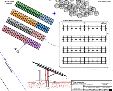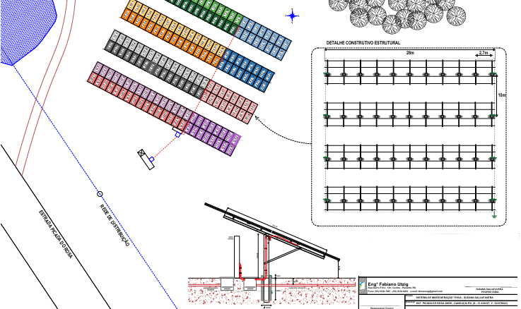 Projeto e arranjo de usina fotovoltaica de 75kW, conectado em Média Tensão, submetido a analise da Concessionária de Energia CEEEEquatorial, no município de Canguçu-RS.